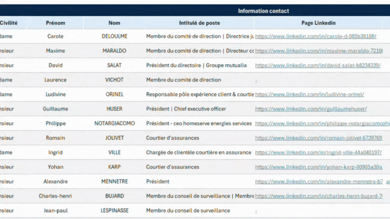 Les données entreprises sont issues du registre public de l’ORIAS. Elles sont ensuite structurées, nettoyées et enrichies grâce à des fournisseurs de données reconnus, ce qui nous permet d’identifier des contacts qualifiés.